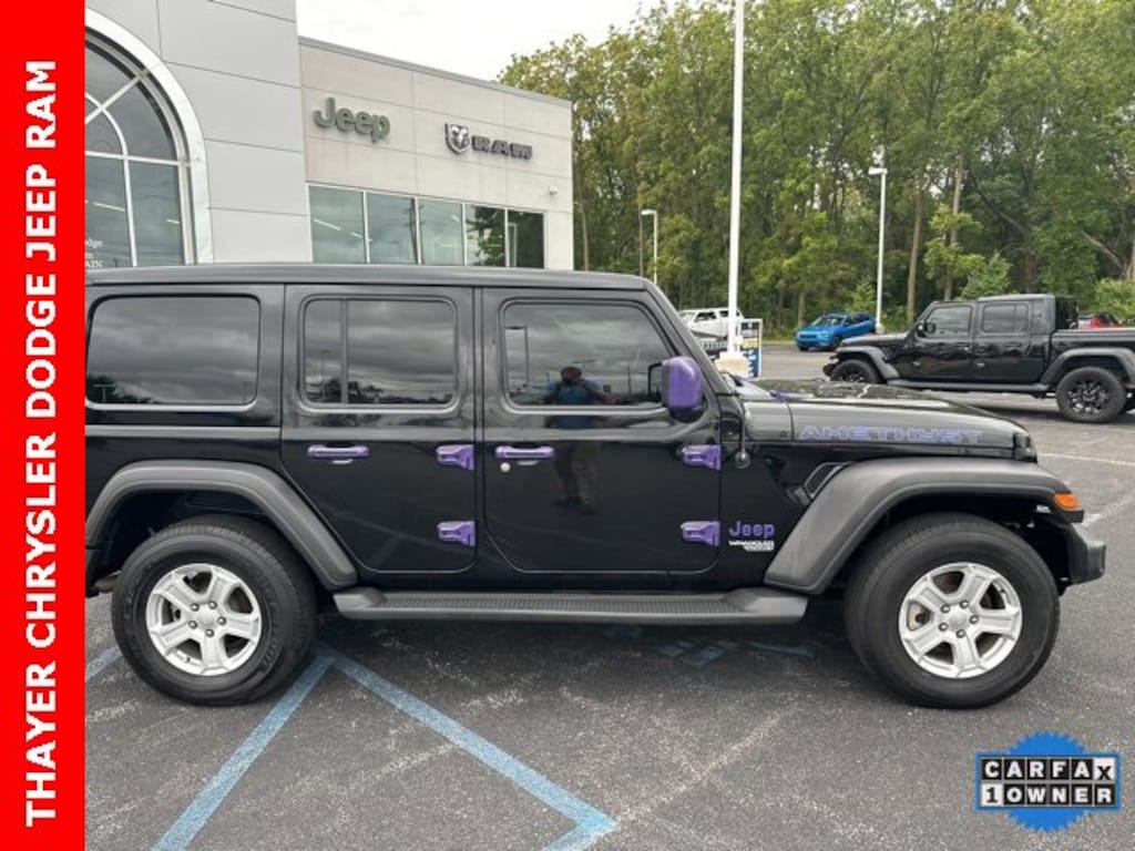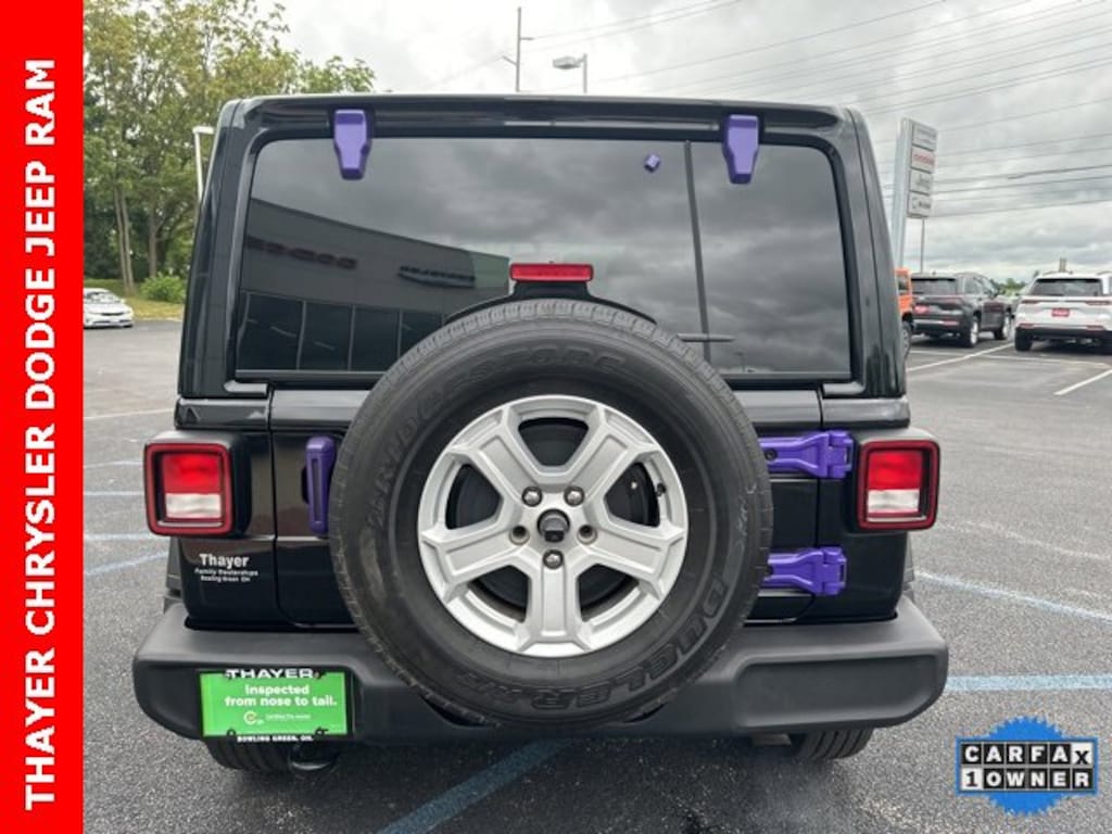 115V Auxiliary Power Outlet, 3.45 Rear Axle Ratio, 4-Wheel Disc Brakes, 7.0" Touchscreen Display, 8 Speakers, 8.4" Radio & Premium Audio Group, ABS brakes, Air Conditioning, Air Conditioning w/Auto Temperature Control, Air Filtering, Alpine Premium Audio System, AM/FM radio, Apple CarPlay, Auto-Dimming Rear-View Mirror, Automatic Headlamps, Aux Battery, Brake assist, Cloth Low-Back Bucket Seats, Cluster 7.0" TFT Color Display, Cold Weather Group, Compass, Console Bin Task Light, Convenience Group, Deep Tint Sunscreen Windows, Delay-off headlights, Driver door bin, Driver vanity mirror, Dual front impact airbags, Dual front side impact airbags, Electronic Stability Control, Emergency/Assistance Call, For More Info, Call 800-643-2112, Front 1-Touch Down Power Windows, Front anti-roll bar, Front Bucket Seats, Front Center Armrest w/Storage, Front fog lights, Front reading lights, Google Android Auto, GPS Antenna Input, Heated Front Seats, Heated Steering Wheel, Integrated Center Stack Radio, Integrated roll-over protection, Leather Wrapped Steering Wheel, Low tire pressure warning, Media Hub-2 USBS (Both Charge Only), Non-Lock Fuel Cap w/o Discriminator, Normal Duty Suspension, Occupant sensing airbag, Outside temperature display, ParkView Rear Back-Up Camera, Passenger door bin, Passenger vanity mirror, Power Heated Mirrors, Power steering, Power Top Quarter Window Storage Bag, Quick Order Package 22S Sport S, Radio data system, Radio: Uconnect 3 w/5" Display, Radio: Uconnect 4 w/7" Display, Radio: Uconnect 4C Nav w/8.4" Display (DISC), Rear anti-roll bar, Rear reading lights, Rear Window Defroster, Rear Window Wiper/Washer, Remote Keyless Entry, Remote USB Port - Charge Only, Removable Rear Quarter Windows, Security Alarm, SiriusXM Radio Service, SiriusXM Satellite Radio, Sky 1-Touch Power Top, Speed control, Speed Sensitive Power Locks, Split folding rear seat, Sport S, Steering wheel mounted audio controls, Stop-Start Dual Battery System, Sun and Sound Package, Sun Visors w/Illuminated Vanity Mirrors, Tachometer, Technology Group, Telescoping steering wheel, Tilt steering wheel, Traction control, Trip computer, Universal Garage Door Opener, USB Host Flip, Variably intermittent wipers, Wheels: 17" x 7.5" Black Steel Styled, Wheels: 17" x 7.5" Tech Silver Aluminum. Pricing does not include our 295 Nitrofill Protection Package added at time of Sale!!! Jeep Details: