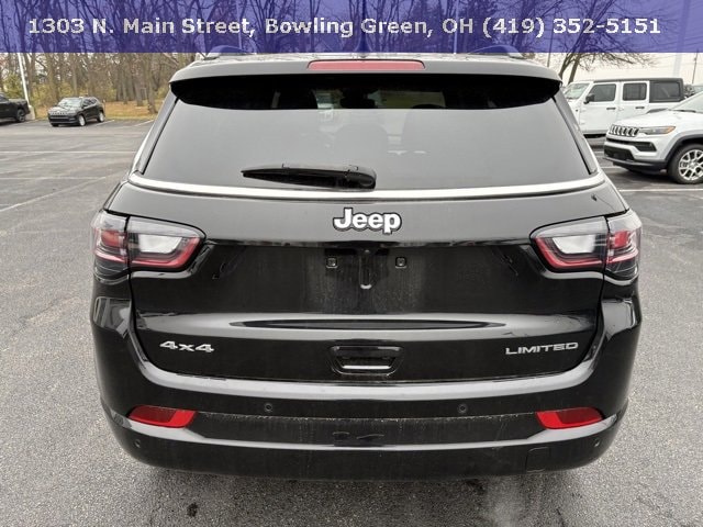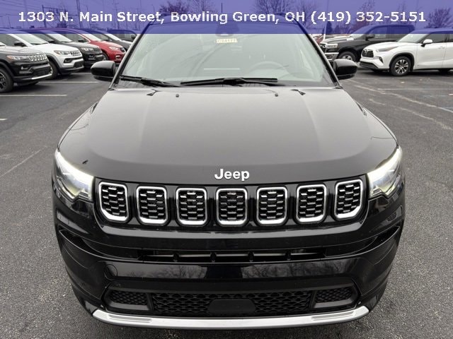 Diamond Black Crystal Pearlcoat 2024 Jeep Compass Limited 4WD 8-Speed Automatic 2.0L I4 DOHC 10.1" Touchscreen Display, 3.73 Final Drive Ratio, 4-Wheel Disc Brakes, 4G LTE Wi-Fi Hot Spot, 6 Speakers, ABS brakes, Air Conditioning, Alexa Built-In, Alloy wheels, AM/FM radio: SiriusXM, Auto High-beam Headlights, Auto-dimming Rear-View mirror, Automatic temperature control, Brake assist, Bumpers: body-color, Cluster 10.25" TFT Color Display, Compass, Connected Travel & Traffic Services, Delay-off headlights, Diamond Black Door Cladding, Diamond Black Exterior Sill, Diamond Black Fascias, Diamond Black Wheel Flares, Disassociated Touchscreen Display, Driver door bin, Driver Seat Memory, Driver vanity mirror, Dual front impact airbags, Dual front side impact airbags, Electronic Stability Control, Elite Group, Emergency communication system: Jeep Connect, Foot Activated Open 'N Go Liftgate, For Details, Visit DriveUconnect.com, For More Info, Call 800-643-2112, Four wheel independent suspension, Front anti-roll bar, Front Bucket Seats, Front Center Armrest w/Storage, Front dual zone A/C, Front fog lights, Front License Plate Bracket, Front reading lights, Fully automatic headlights, Global Telematics Box Module (TBM), GPS Navigation, HD Radio, Heated door mirrors, Heated front seats, Heated steering wheel, Illuminated entry, Integrated Voice Command w/Bluetooth, Knee airbag, Leather Shift Knob, Leather steering wheel, Leatherette Seats, LED Low/Highbeam Projector Headlamps, Low tire pressure warning, Occupant sensing airbag, Outside temperature display, Overhead airbag, Overhead console, Panic alarm, ParkView Rear Back-Up Camera, Passenger door bin, Passenger vanity mirror, Power 2-Way Passenger Lumbar Adjust, Power 8-Way Adjust Front Passenger Seat, Power door mirrors, Power driver seat, Power Front/Fixed Rear Full Sunroof, Power Liftgate, Power steering, Power windows, Premium Alpine Speaker System, Premium Leather Trimmed Bucket Seats, Premium LED Fog Lamps, Premium Taillamps, Quick Order Package 29G Limited, Radio: Uconnect 5 Nav w/10.1" Display, Radio: Uconnect 5 w/10.1" Display, Rain sensing wipers, Rear anti-roll bar, Rear seat center armrest, Rear window defroster, Rear window wiper, Remote keyless entry, Reversible Carpet/Vinyl Cargo Mat, Security system, SiriusXM Guardian - Included Trial (B), SiriusXM Radio Service, SiriusXM w/360L, Speed control, Split folding rear seat, Spoiler, Steering wheel mounted audio controls, Sun and Sound Group, Tachometer, Telescoping steering wheel, Tilt steering wheel, Traction control, Trip computer, Turn signal indicator mirrors, Variably intermittent wipers, Ventilated Front Seats, Wheels: 18" x 7" Painted Diamond Cut Aluminum, Wheels: 19" x 7.5" Painted Diamond Cut Aluminum.