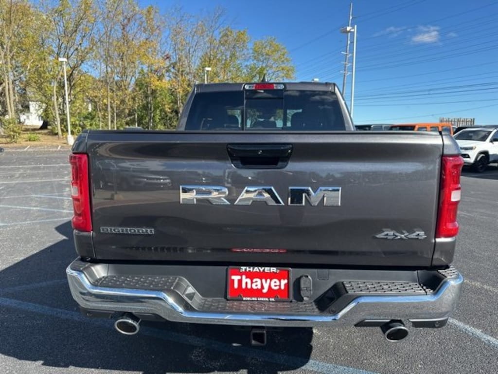 Granite Crystal Metallic Clearcoat 2026 Ram 1500 Big Horn/Lone Star 4WD 8-Speed Automatic 3.0L I6 115V Auxiliary Power Outlet, 2nd Row In Floor Storage Bins, 3 Rear Seat Head Restraints, 3.21 Rear Axle Ratio, 4 Way Front Headrests, 4-Wheel Disc Brakes, 400W Inverter, 4G LTE Wi-Fi Hot Spot, 6 Speakers, ABS brakes, Accent Color Tailgate Handle, Air Conditioning, Alloy wheels, AM/FM radio, Apple CarPlay, Apple CarPlay/Android Auto, Auto High-beam Headlights, Auto Power-Folding Mirrors, Auto-Dimming Exterior Driver Mirror, Auto-Dimming Rear-View Mirror, Big Horn Level 1 Equipment Group, Black Exterior Mirrors, Black Premium Power Mirrors, Black Trailer Tow Power Mirrors, Body Color Fender Flares, Brake assist, Bucket Seats, Bumpers: chrome, Center Console Parts Module, Cloth Bucket Seats, Compass, Connectivity - US/Canada, Convex Wide-Angle Exterior Mirror Insert, Delay-off headlights, Deluxe Cloth Bucket Seats, Driver door bin, Dual front impact airbags, Dual front side impact airbags, Electronic Stability Control, Exterior Mirrors Courtesy Lamps, Exterior Mirrors w/Heating Element, Exterior Mirrors w/Supplemental Signals, Front anti-roll bar, Front Bucket Seats, Front Center Armrest w/Storage, Front fog lights, Front reading lights, Front Seat Back Map Pockets, Front wheel independent suspension, Full Length Floor Console, Fully automatic headlights, Global Telematics Box Module (TBM), Glove Box Lamp, Google Android Auto, GPS Antenna Input, Heated door mirrors, Heated Front Seats, Heated Steering Wheel, Illuminated entry, Integrated Center Stack Radio, Integrated Voice Command w/Bluetooth, Leather Wrapped Steering Wheel, Low tire pressure warning, Manual Adjust 4-Way Driver Seat, Manual Adjust 4-Way Front Passenger Seat, Manual Folding Exterior Mirrors, Manual Telescoping Mirrors, Mirror Clearance/Running Lights, MOPAR Front & Rear Rubber Floor Mats, Occupant sensing airbag, Outside temperature display, Overhead airbag, Overhead console, Panic alarm, ParkView Rear Back-Up Camera, Passenger door bin, Passenger vanity mirror, Power 2-Way Driver Lumbar Adjust, Power Adjust 8-Way Driver Seat, Power Adjustable Pedals, Power door mirrors, Power steering, Power windows, Power-Adjustable Convex Aux Mirrors, Quick Order Package 21Z Big Horn, Radio data system, Radio: Uconnect 5 W w/8.4" Display, RAM Grille Badge - Chrome, Rear 60/40 Folding Seat, Rear anti-roll bar, Rear Center Armrest, Rear Dome w/On/Off Switch Lamp, Rear Power Sliding Window, Rear step bumper, Rear Window Defroster, Remote keyless entry, SiriusXM Radio Service, SiriusXM Satellite Radio, Speed control, Steering Wheel Mounted Audio Controls, Sun Visors w/Illuminated Vanity Mirrors, Supplier Part Tracking (J-1), Tachometer, Telescoping steering wheel, Tilt steering wheel, Towing Technology Group, Traction control, Trailer Brake Control, Trailer Hitch Line-Up Assist, Trailer Reverse Steering Control, Trailer Tire Pressure Monitoring System, Trailer Tow Mirrors, Trip computer, USB Host Flip, Variably intermittent wipers, Voltmeter, Wheels: 18" x 8" Cast-Aluminum Painted.
