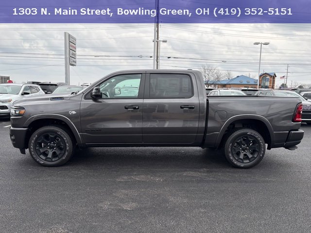 Granite Crystal Metallic Clearcoat 2026 Ram 1500 Big Horn/Lone Star 4WD 8-Speed Automatic HEMI 5.7L V8 Multi Displacement VVT eTorque 115V Auxiliary Power Outlet, 115V Auxiliary Rear Power Outlet, 12" Touchscreen Display, 3 Rear Seat Head Restraints, 33 Gallon Fuel Tank, 4 Way Front Headrests, 4-Wheel Disc Brakes, 400W Inverter, 48V Belt Starter Generator, 4G LTE Wi-Fi Hot Spot, 6 Speakers, ABS brakes, Accent Color Door Handles, Accent Color Premium Power Mirrors, Accent Color Tailgate Handle, Air Conditioning, Alloy wheels, AM/FM radio, Anti-Spin Differential Rear Axle, Apple CarPlay, Apple CarPlay/Android Auto, Auto High-beam Headlights, Auto Power-Folding Mirrors, Auto-Dimming Exterior Driver Mirror, Auto-Dimming Rear-View Mirror, Bed Utility Group, Big Horn Level 2 Equipment Group, Black Exterior Mirrors, Black Exterior Truck Badging, Black Headlamp Bezels, Black Interior Accents, Black Painted Exterior Mirrors Caps, Black Premium Power Mirrors, Black Tail Lamp Bezels, Body Color Fender Flares, Body Color Front Bumper, Brake assist, Bucket Seats, Bumpers: chrome, Center Console Parts Module, Cloth Bucket Seats, Cluster 7.0" TFT Color Display, Compass, Configurable Drive Mode, Connectivity - US/Canada, Convex Wide-Angle Exterior Mirror Insert, Delay-off headlights, Deluxe Cloth Bucket Seats, Disassociated Touchscreen Display, Driver door bin, Dual front impact airbags, Dual front side impact airbags, Electronic Stability Control, Exterior 115V AC Outlet, Exterior Mirrors Courtesy Lamps, Front anti-roll bar, Front Bucket Seats, Front Center Armrest w/Storage, Front fog lights, Front License Plate Bracket, Front reading lights, Front Seat Back Map Pockets, Front wheel independent suspension, Full Length Floor Console, Fully automatic headlights, Glove Box Lamp, Google Android Auto, GPS Antenna Input, GPS Navigation, Grille Black Surround Black Mesh, HD Radio, Heated door mirrors, Heated Front Seats, Heated Steering Wheel, Illuminated entry, Integrated Center Stack Radio, Leather Wrapped Steering Wheel, LED Footwell Lighting, Low tire pressure warning, Manual Adjust 4-Way Driver Seat, Manual Adjust 4-Way Front Passenger Seat, Manual Folding Exterior Mirrors, MOPAR 4 Adjustable Cargo Tie-Down Hooks, Night Edition, Occupant sensing airbag, Outside temperature display, Overhead airbag, Overhead console, Overhead LED Lamps, Panic alarm, ParkView Rear Back-Up Camera, Passenger door bin, Passenger vanity mirror, Pick-Up Box Lighting, Power 2-Way Driver Lumbar Adjust, Power Adjust 8-Way Driver Seat, Power Adjustable Pedals, Power door mirrors, Power steering, Power windows, Premium Overhead Console, Quick Order Package 27Z Big Horn, Radio data system, RAM Grille Badge - Black, RAM Grille Badge - Chrome, Rear 60/40 Folding Seat, Rear anti-roll bar, Rear Center Armrest, Rear Power Sliding Window, Rear step bumper, Rear Underseat Compartment Storage, Rear Wheelhouse Liners, Rear Window Defroster, Remote keyless entry, Remote Tailgate Release, Security Alarm, SiriusXM Radio Service, Speed control, Steering Wheel Mounted Audio Controls, Supplier Part Tracking (J-1), Tachometer, Telescoping steering wheel, Tilt steering wheel, Traction control, Trailer Brake Control, Trip computer, Universal Garage Door Opener, USB Host Flip, Variably intermittent wipers, Voltmeter, Wheels: 18" x 8" Cast-Aluminum Painted, Wheels: 20" x 9.0" Aluminum Painted Clad.