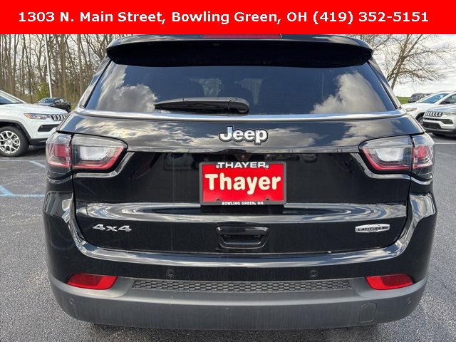 Diamond Black Crystal Pearlcoat 2024 Jeep Compass Latitude Lux 4WD 8-Speed Automatic 2.0L I4 DOHC 2nd Row USB Type A/C Charge Only, 3.73 Final Drive Ratio, 360 Surround View Camera System, 4-Wheel Disc Brakes, 6 Speakers, ABS brakes, Adaptive Cruise Control w/Stop & Go, Air Conditioning, Air Conditioning ATC w/Dual Zone Control, All-Season Floor Mats, Alloy wheels, AM/FM radio: SiriusXM, Auto High-beam Headlights, Auto-Dimming Rear-View Mirror, Brake assist, Bumpers: body-color, Compass, Delay-off headlights, Driver door bin, Driver vanity mirror, Dual front impact airbags, Dual front side impact airbags, Electronic Stability Control, Emergency communication system: Jeep Connect, Foot Activated Open 'N Go Liftgate, Four wheel independent suspension, Front anti-roll bar, Front Bucket Seats, Front Center Armrest w/Storage, Front fog lights, Front License Plate Bracket, Front reading lights, Fully automatic headlights, Heated door mirrors, Heated front seats, Heated steering wheel, Humidity Sensor, Illuminated entry, Knee airbag, Leather Shift Knob, Leather steering wheel, Leatherette Seats, LED Low/Highbeam Projector Headlamps, Low tire pressure warning, Lux Driver Assist, Occupant sensing airbag, Outside temperature display, Overhead airbag, Overhead console, P&P Park & Unpark Assist System, Panic alarm, ParkSense Fr/Rr Park Assist System, ParkView Rear Back-Up Camera, Passenger door bin, Passenger vanity mirror, Power door mirrors, Power driver seat, Power Front/Fixed Rear Full Sunroof, Power Liftgate, Power steering, Power windows, Premium Alpine Speaker System, Premium LED Fog Lamps, Premium Lighting Group, Premium Taillamps, Quick Order Package 29L, Radio: Uconnect 5 w/10.1" Display, Rain Sensitive/Intermittent Wipers, Rear anti-roll bar, Rear seat center armrest, Rear window defroster, Rear window wiper, Remote keyless entry, Reversible Carpet/Vinyl Cargo Mat, Security system, Speed control, Split folding rear seat, Spoiler, Steering wheel mounted audio controls, Sun and Sound Group, Tachometer, Telescoping steering wheel, Tilt steering wheel, Traction control, Trip computer, Universal Garage Door Opener, Variably intermittent wipers, Wheels: 18" x 7" Painted Aluminum, Windshield Wiper De-Icer, Wireless Charging Pad.
